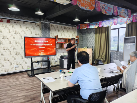 襄阳市大学科技园承办襄阳职业技术学院中国国际大学生创新大赛(2025)校赛初赛发表时间:2025-05-19 09:31 “我敢创 我会创” 我校举办中国国际大学生创新大赛(2025)校赛初赛 5 月 17 日,襄阳职业技术学院 “中国国际大学生创新大赛(2025)校赛初赛” 在襄阳市大学科技园 “创业咖啡” 火热举行。本次赛事邀请三位国赛优秀指导老师担任评委,学校副校长章伟亲临现场指导,各院部书记全程参与项目研讨,创新创业学院副院长杨哲作动员讲话,为参赛团队加油鼓劲。